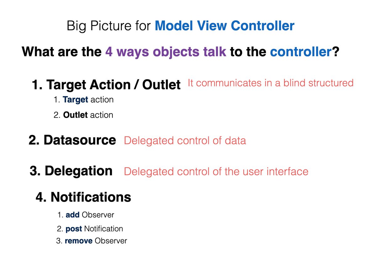 المتحكم او المشرف Controller : له مسميات اخرى مثل Presenter/ViewModel -> وهو من اسمه مثل الدماغ عندنا هو حلقة الاشراف والوصل بين الواجهات و البيانات المودل (model و view ) ، مثلاً يقوم هو بتخاطب وتزويد View بالمعلومات من الموديل، وقوم بتحذيث المودل اذا تم ادخال له بيانات جديدة