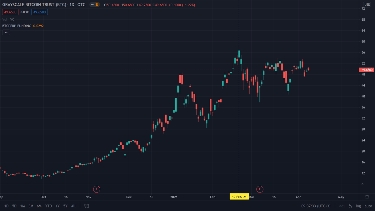 - نلاحظ من شهر فبراير @Grayscale و الـ $GBTC الطلب عليه ثابت و مايزيد نفس ما كان يزيد في الربع الأخير من سنة 2020 و هذا شي مو زين للبتكوين