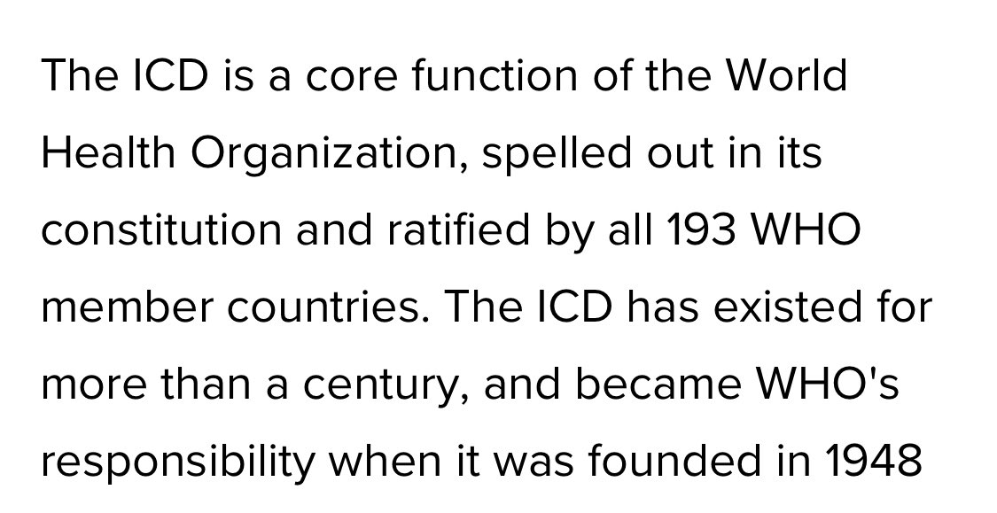 3- تمت الموافقة على استخدام الدليل ICD من قبل جميع وزراء الصحة وعددهم 193 وزير في جميع الدول الأعضاء في #منظمة_الصحة_العالمية (بمن فيهم وزير الصحة السعودي)