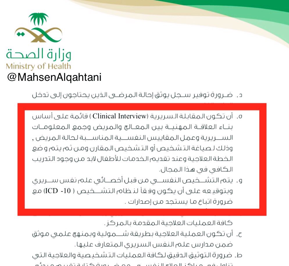 8-لذلك شددت #وزارة_الصحة على استخدام ICD وما ينشر عنه من إصدارات للـ #الاخصائيين_النفسيين والتوقيع على أن يكون التشخيص وفقاً لـ ICD