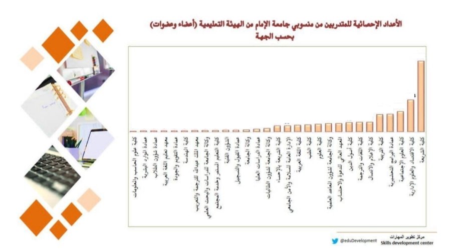 أعضاء هيئة التدريس على حضور برنامجي التعليم والتعلمUTL و تأهيل المعيدين TAT وكذلك برنامج SPSS بمستوياته الثلاثة ( المبتدئ – المتوسط – المتقدم).حيث بلغ عدد المستفيدين 757 مستفيد، وجاءت دورة مهارة استعمال التطبيقات الذكية في أعلى الدورات حضوراً بواقع 165 مستفيد.