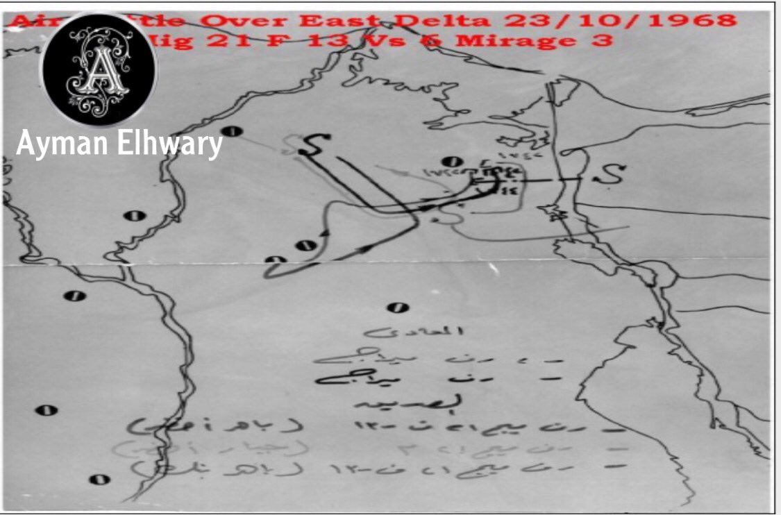 ٢٦- "الميراج " أرتفاعها فى اتجاه الشمال فى محاولة للهروب بدأت في مطاردة احداها بمدفعي وسقطت وتم تأكيدها بالمراقبة الأرضية