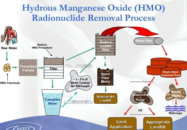التبادل الأيوني:يتم امتصاص الراديوم واليورانيوم بواسطة طبقة الراتنج ويتم استبدالهما بمركب أكثر أمانا.