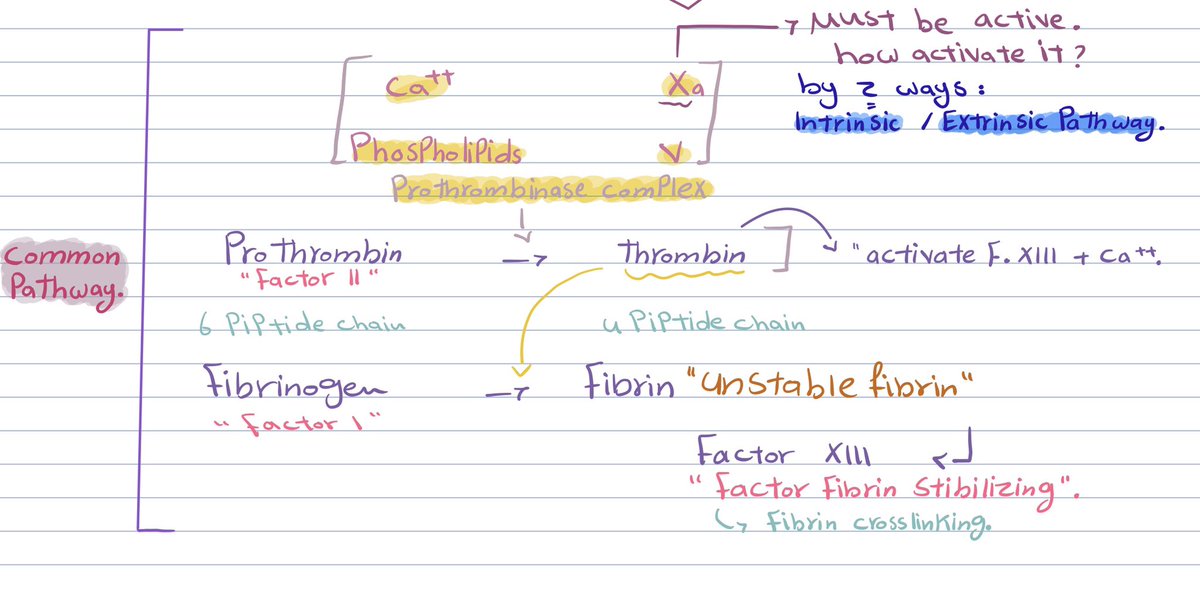 هذيلي الأربعه لازم كلهم يوافقون عشان يحولون prothromin إلى thrombin واللي بدوره بيحول لي fibrinogen إلى fibrin وتتكون الجلطة