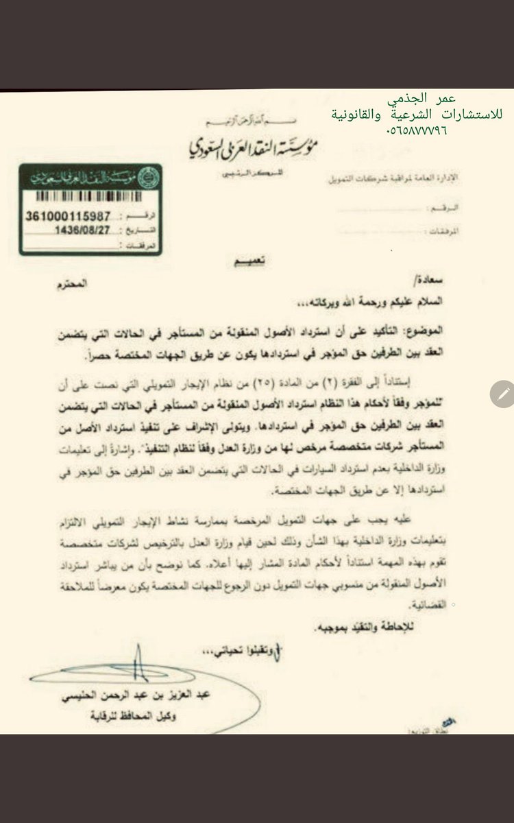 س/اشتريت سيارة بنظام #الايجار_المنتهي_بالتمليك وتأخرت سداد بعض الاقساط فهل يحق لهم سحب السيارة دون علمي وبيعها والمطالبة بفارق السعر ؟!