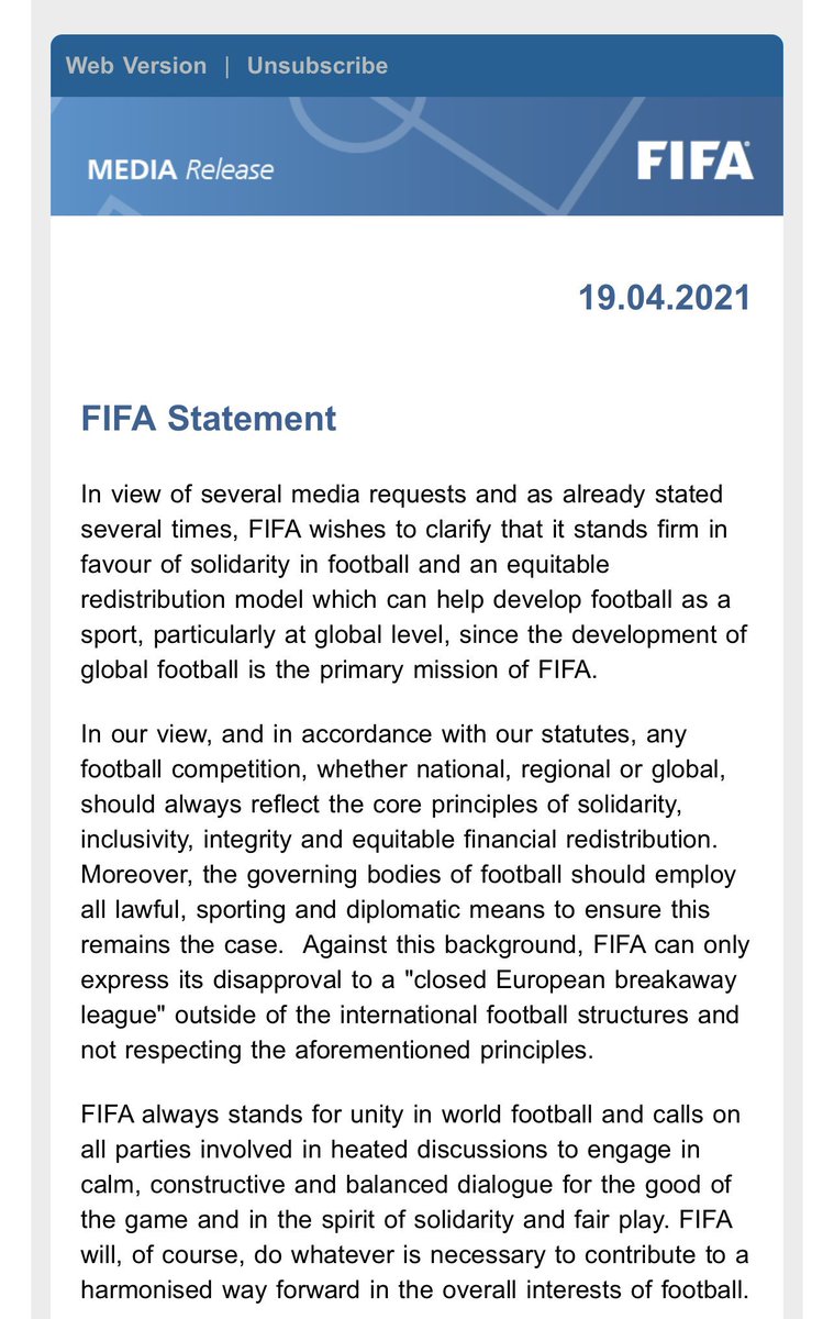 الفيفا قال ان الاندية المؤسسة هتتمنع من المشاركة في المسابقات المحلية و اليويفا