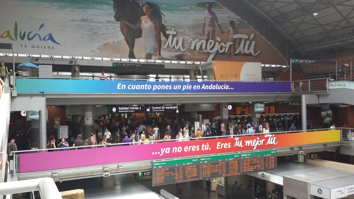 وصلت مطار مدريد واخدت القطار السريع AVE لإشبيلية، اكتشفت انها بعيدة بجد! ٦٠٠ كم من مدريد! بياخدها القطار في ساعتين وشوية