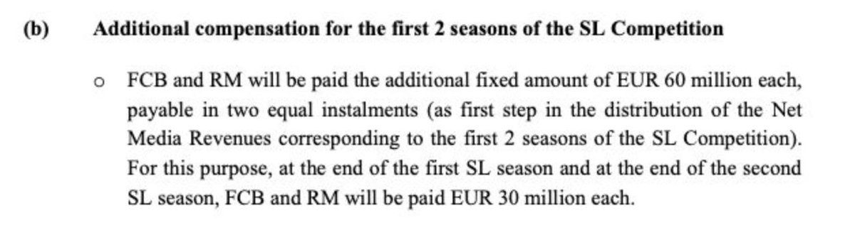 ٣- النادي المنسحب يتوجب عليه إعادة جزء من الدفعة المسبقة عن ال٢٣ موسم (يقصد هنا حصته من قرض ال ٣.٥٢٥ مليار يورو)