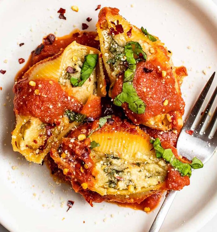 مكرونه بحشوه كرنب وريحان وجبنه الريكوتا