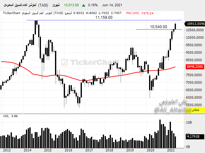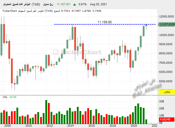المؤشر العام #تاسي أقترب كثيراَ من مستويات القمة المتوقعة له