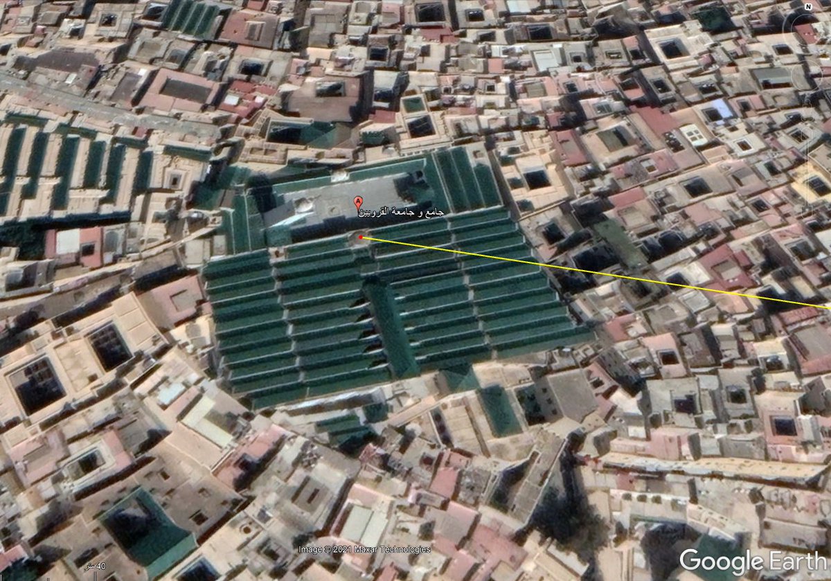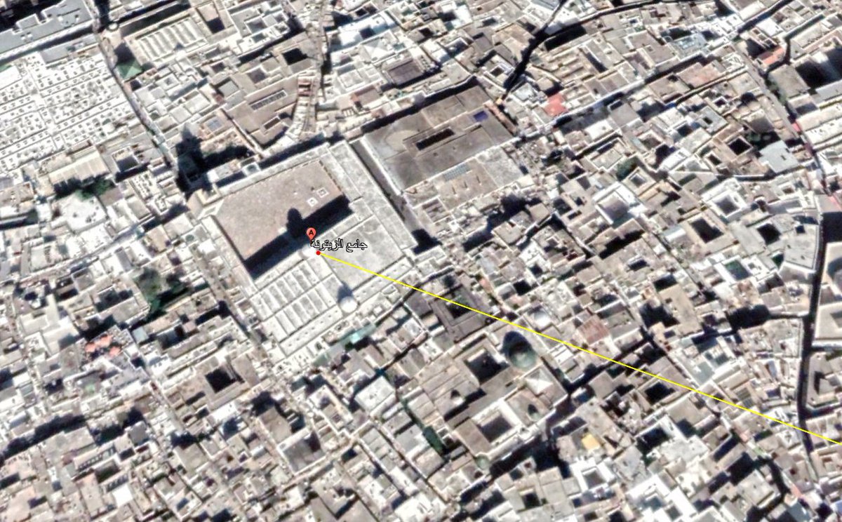 ولكن بعض المساجد عندها انحراف كبير عن القبلة كجامع #القرويين بفاس المغربية ـ على سبيل المثال ـ يبلغ نحو 56 درجة يمين القبلة‼️