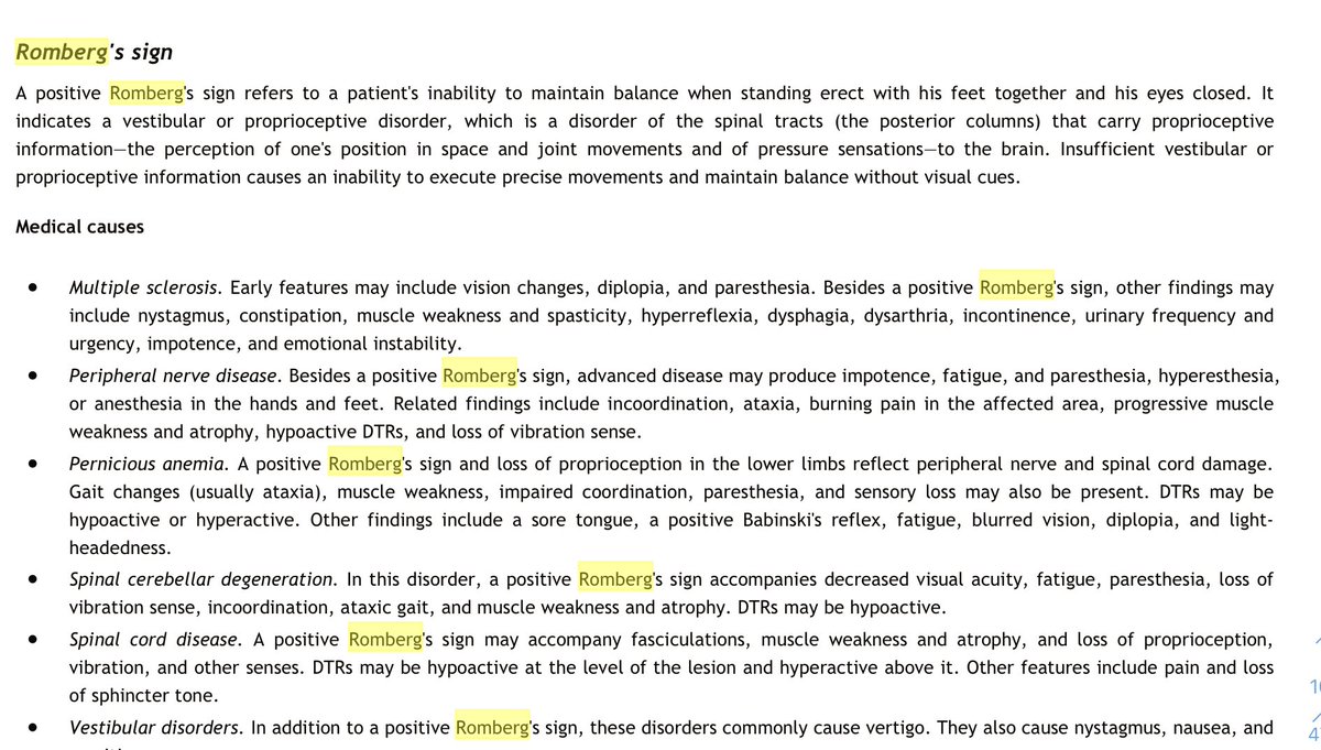 المريض يوقف وعينه مفتوحه بس اذا قفل عيونه يطيح ! هنا الاختبار psotive