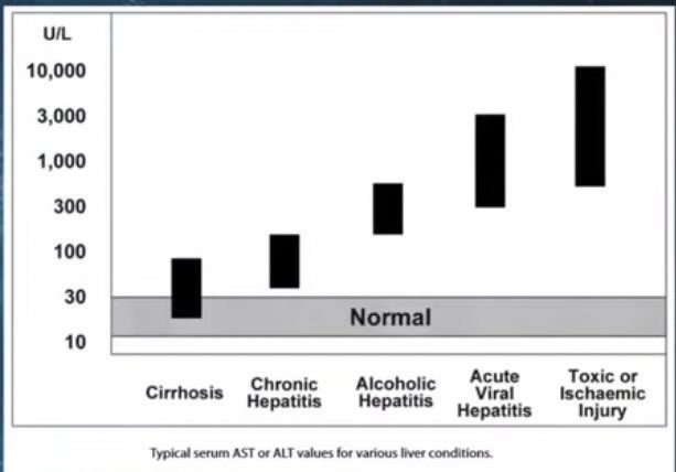 ⭕️لو كان اثنينهم مرتفعين هنا اكيد انسداد او alcholism