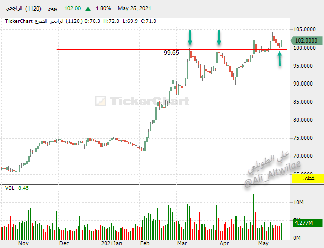 حصل به ارتداد من مستويات دعم سابقة مع ملاحظة تدفق للسيولة على السهم اليومين الماضية بإذن الله نشاهده يتجاوز مستويات 104