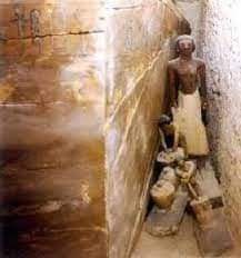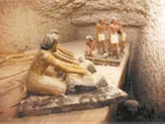 3-البعثة عثرت داخل هذه المقبرة على مجموعة كبيرة من التماثيل الخشبية صغيرة الحجم ملونة باللون الأبيض والأحمر والأسود تصور حياة العمال وأعمالهم في الدنيا من بينها تماثيل لعمال يصنعون الطوب النيئ وآخرون يعبئونه في أكياس من الخيش مربوطة بحبال كما عثر أيضا على تمثال لامرأة تطحن الغلال