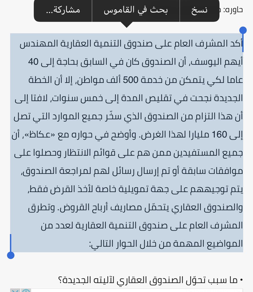 صندوق النقد الدولي لديه تقرير يشير إلى أن نسبة الإسكان وتملك المواطنين لم تتجاوز ٣٦٪ وهذا إثبات لكلام الأمير محمد بن سلمان وهذا تقرير دولي