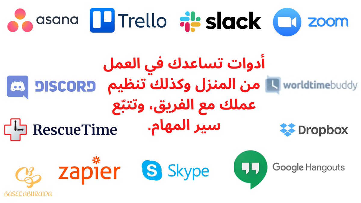 هذا ثريد لأهم الأدوات التي ستساعدك في العمل من المنزل وكذلك تنظيم عملك مع الفريق، عمل الاجتماعات، مشاركة الملفات وغيرها من الأدوات التي ستنظم عملك وتسهله، أضفها لمفضلتك ورتويت، حتحتاجها! 🔃👇