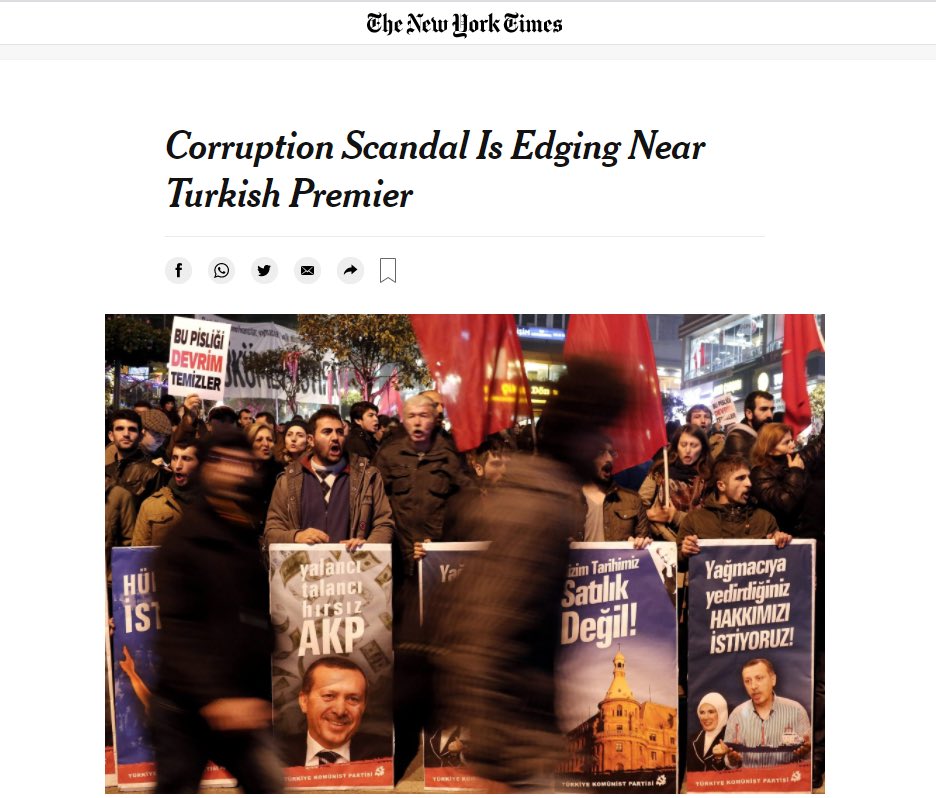 كان متوقعًا من أردوغان رئيس الوزراء حينها أن يخرج إلى العلن لاحتواء الأمر وتقديم ما يضمن سيرًا نزيها للتحقيقات، لكن الأمر كان على العكس تمامًا، إذا استدعى لغة المؤامرات وقال نصًا "أن الأمر برمته مؤامرة قبيحة للغاية وحملةً لتشويه حكومتنا، يتم الترويج لها تحت ذريعة الفساد".