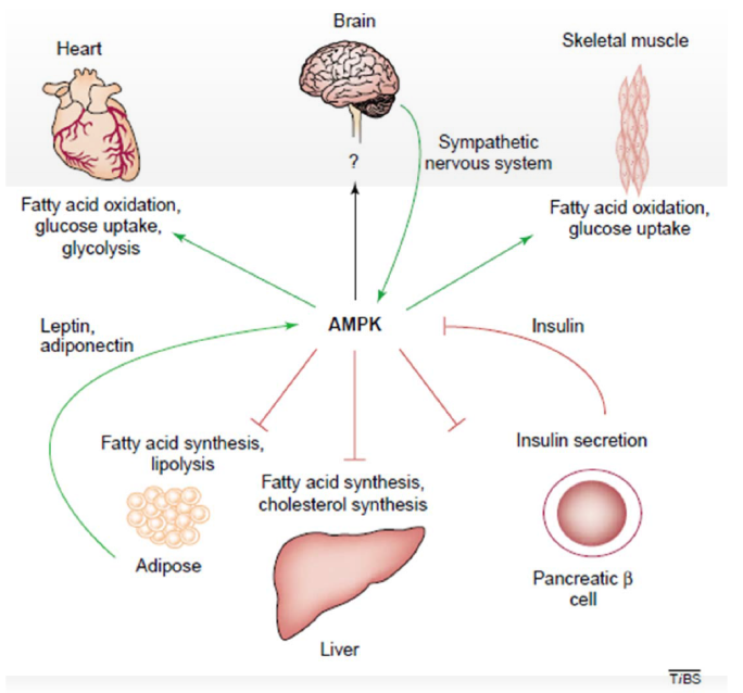مصادر AMPK بإنه يتفعّل في الجسم عن طريق الرياضة وإنزيم موجود في الكبد..