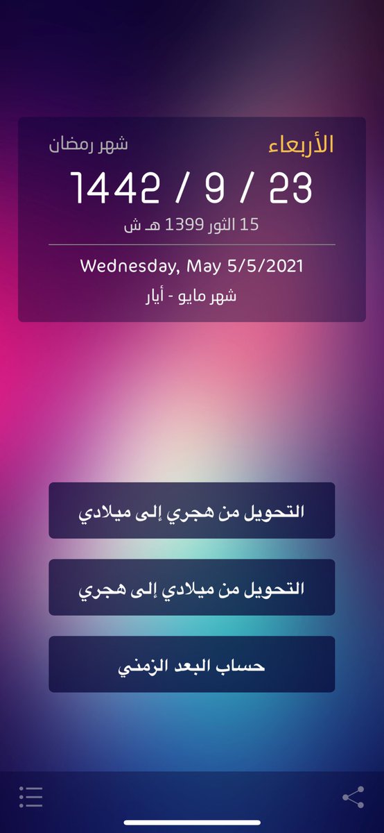 هذا التطبيق جدًا مفيد يحول لك التاريخ الهجري كم يوافق ميلادي والعكس ويحسب لك البعد الزمني للتاريخ تحدد انت ..