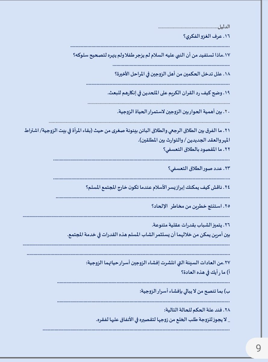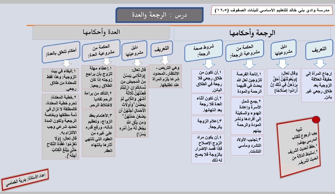 تربية إسلامية للصف الثاني عشر من إعداد الأستاذة بدرية الخماسي من مدرسة وادي بني خالد بمحافظة شمال الشرقية