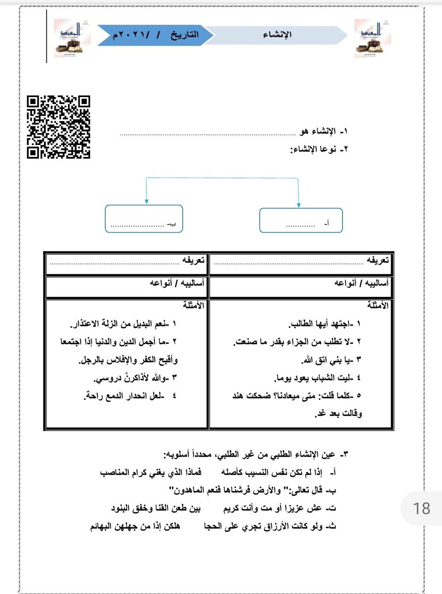 2》تابع مادة اللغة العربية ( المفيد) للصف الثاني عشر