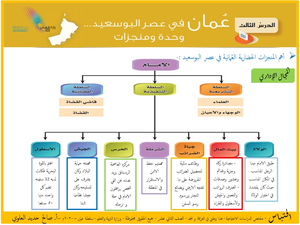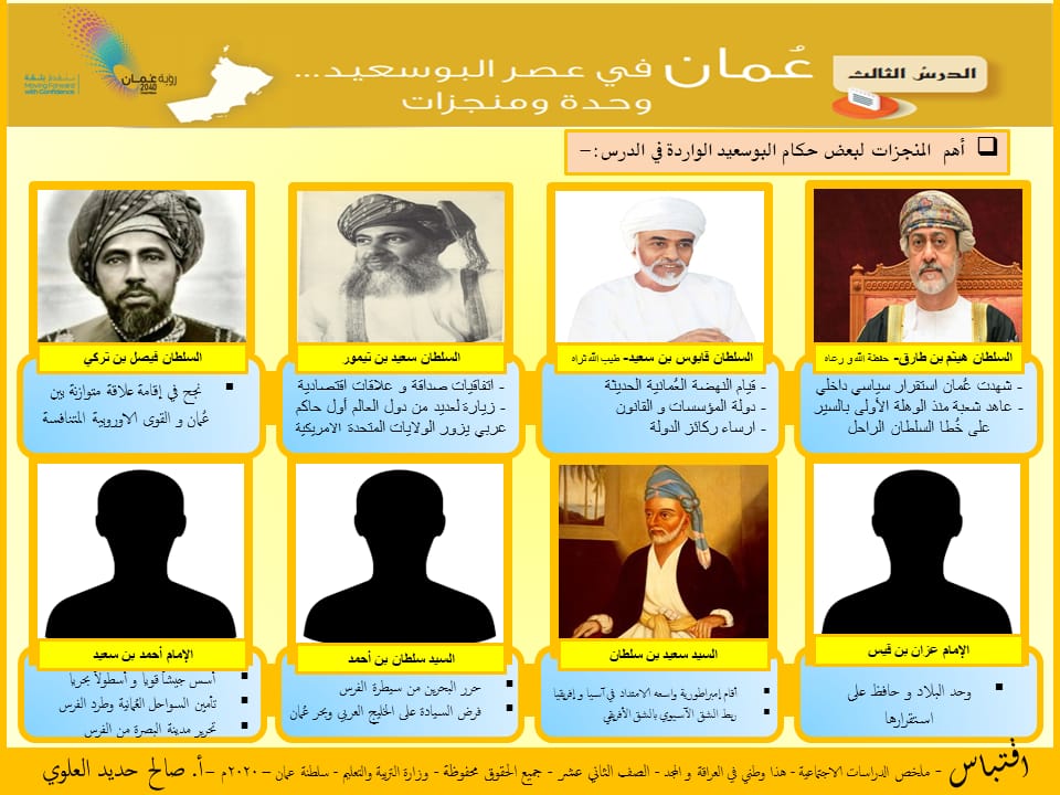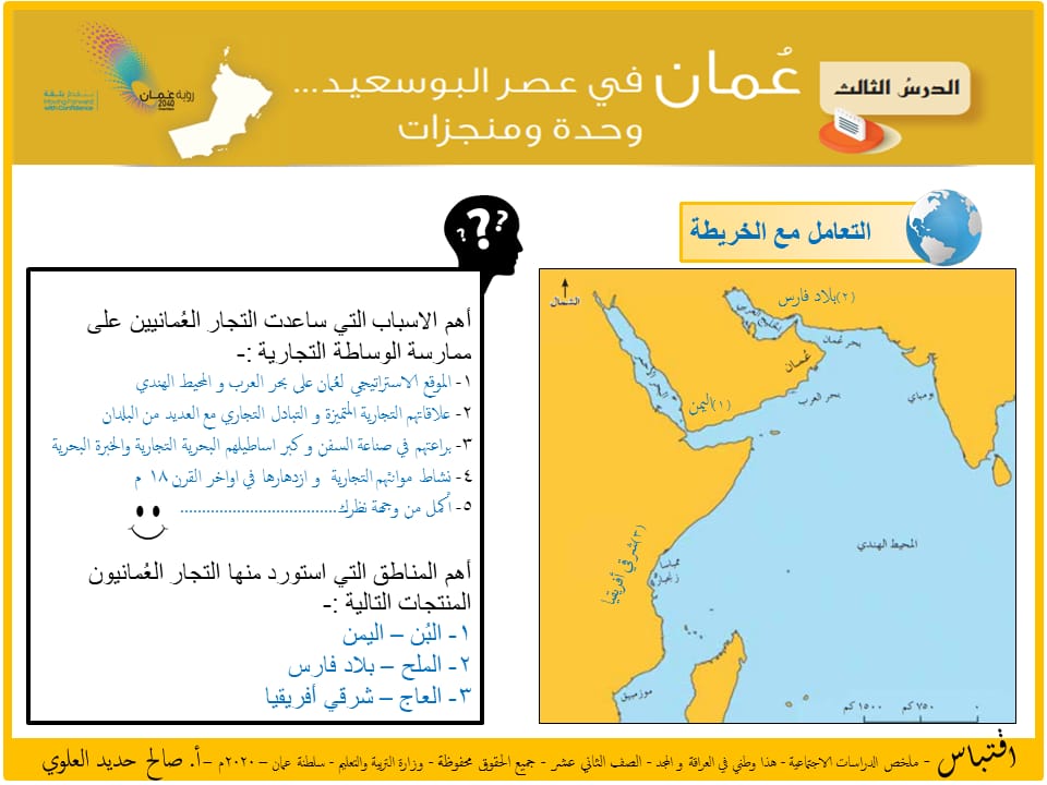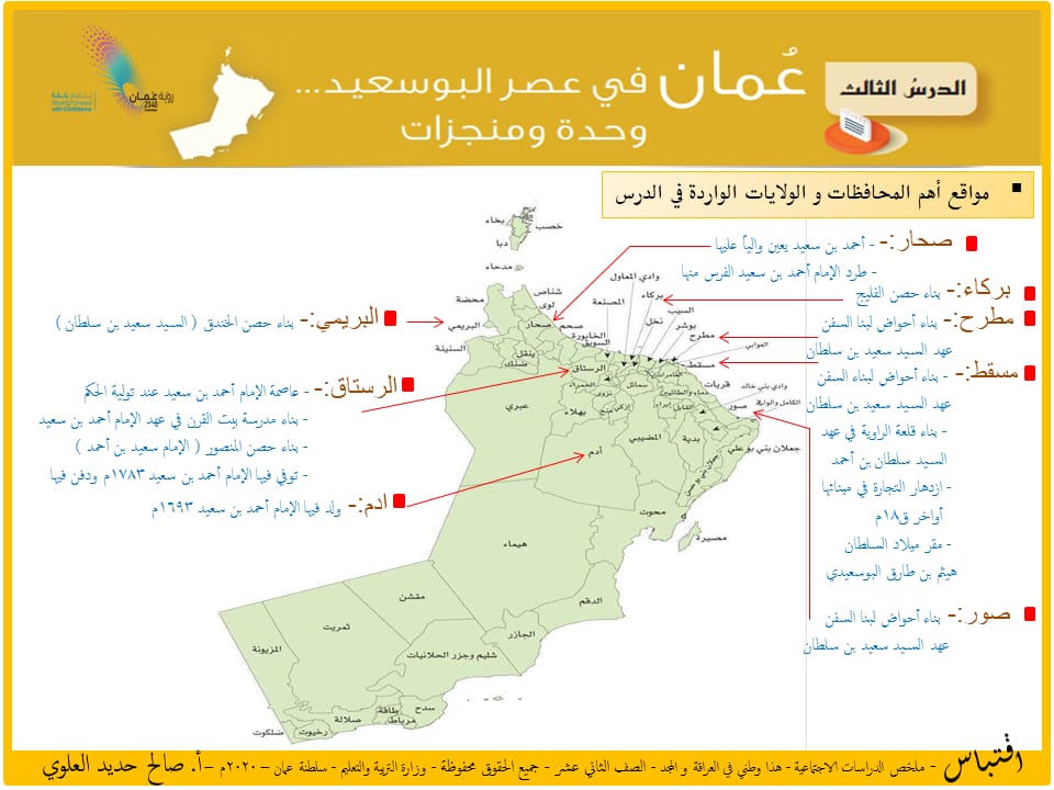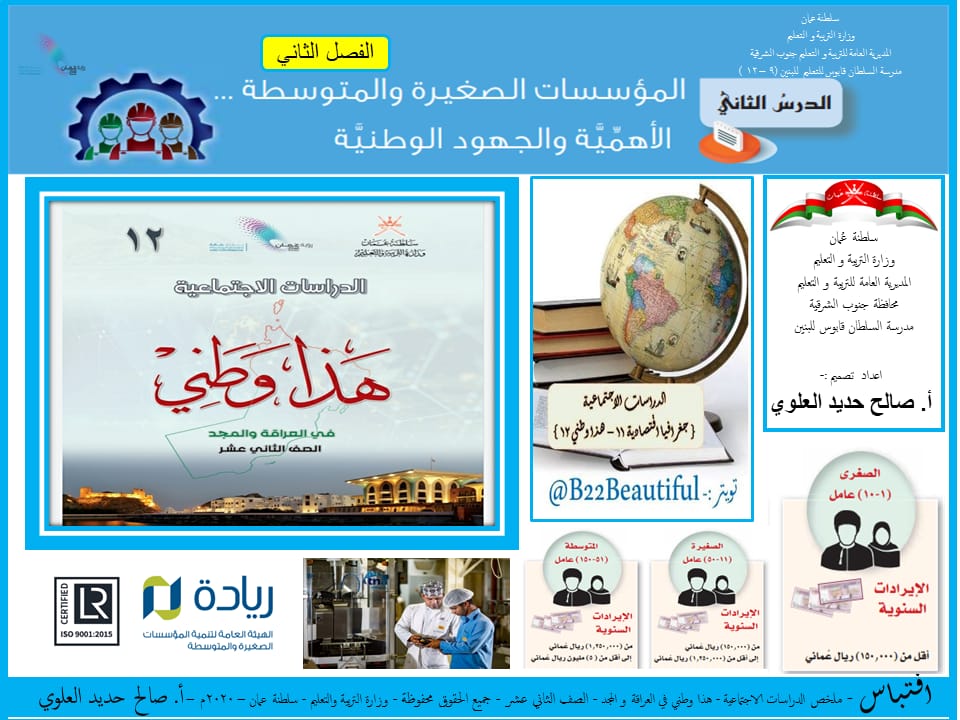 تكملة》 مادة الدراسات الاجتماعية ( هذا وطني ) للصف الثاني عشر من إعداد الأستاذ صالح العلوي من مدرسة السلطان قابوس بمحافظة جنوب الشرقية