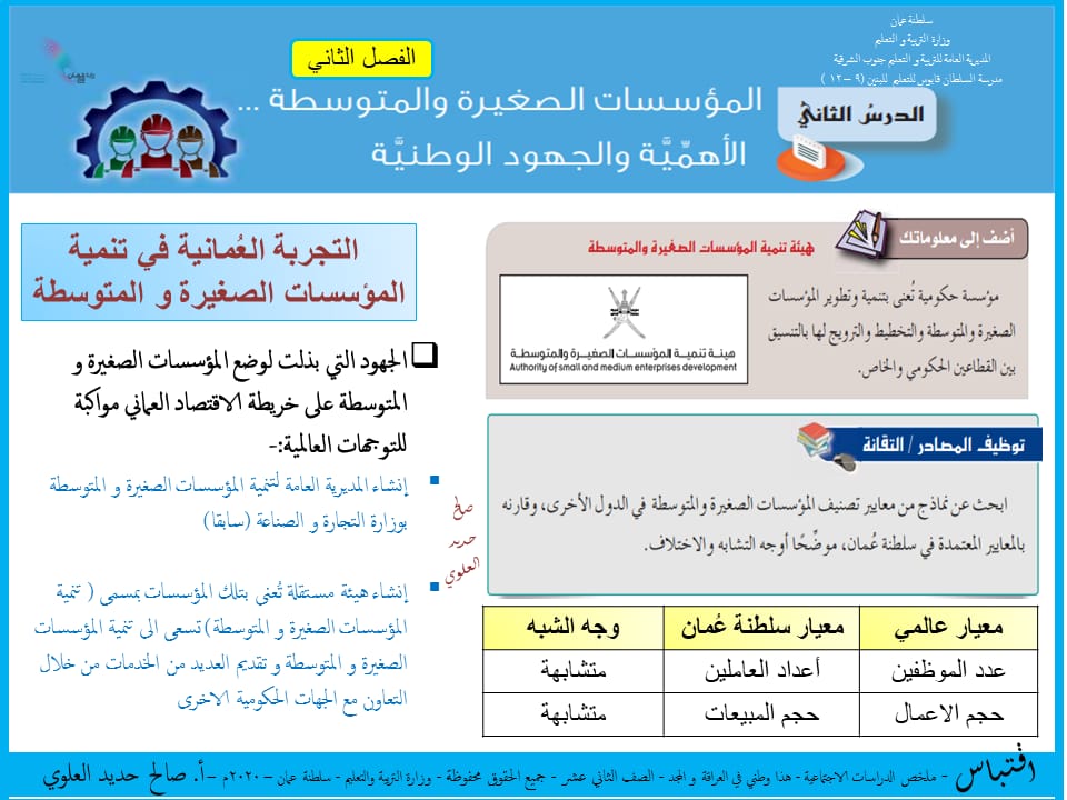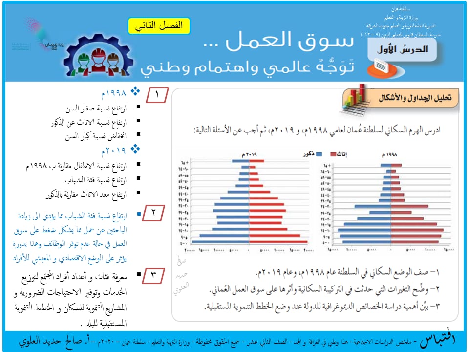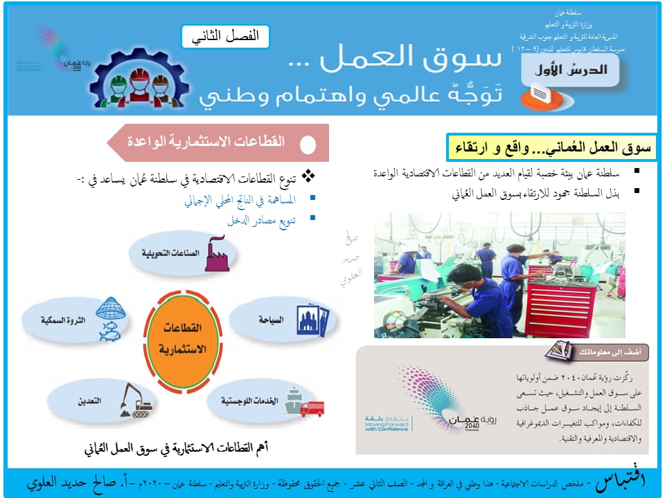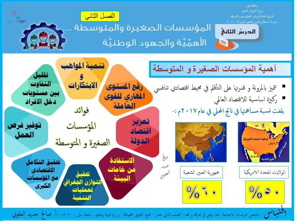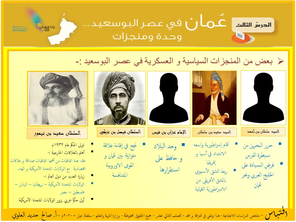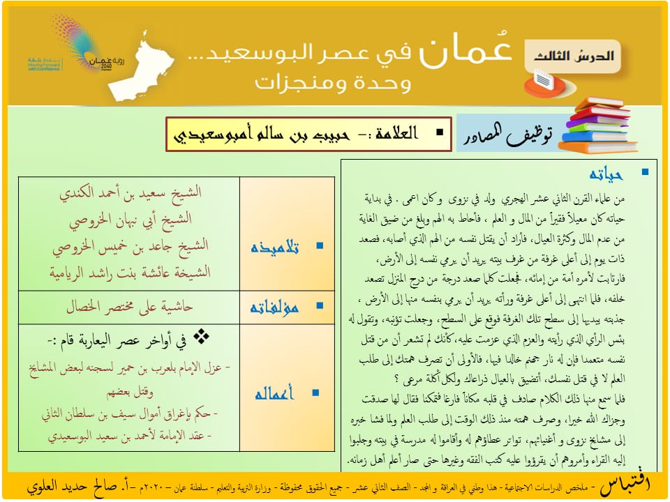 تكملة》 مادة الدراسات الاجتماعية ( هذا وطني ) للصف الثاني عشر من إعداد الأستاذ صالح العلوي من مدرسة السلطان قابوس بمحافظة جنوب الشرقية