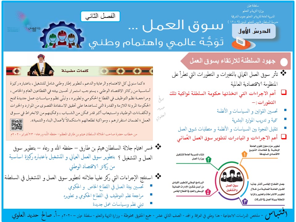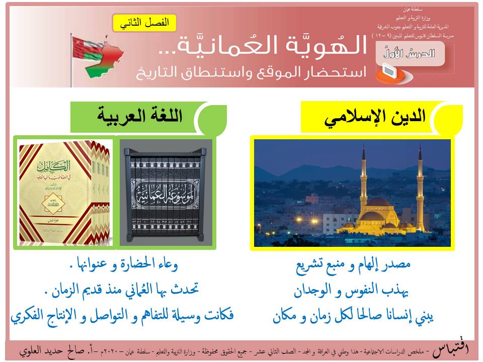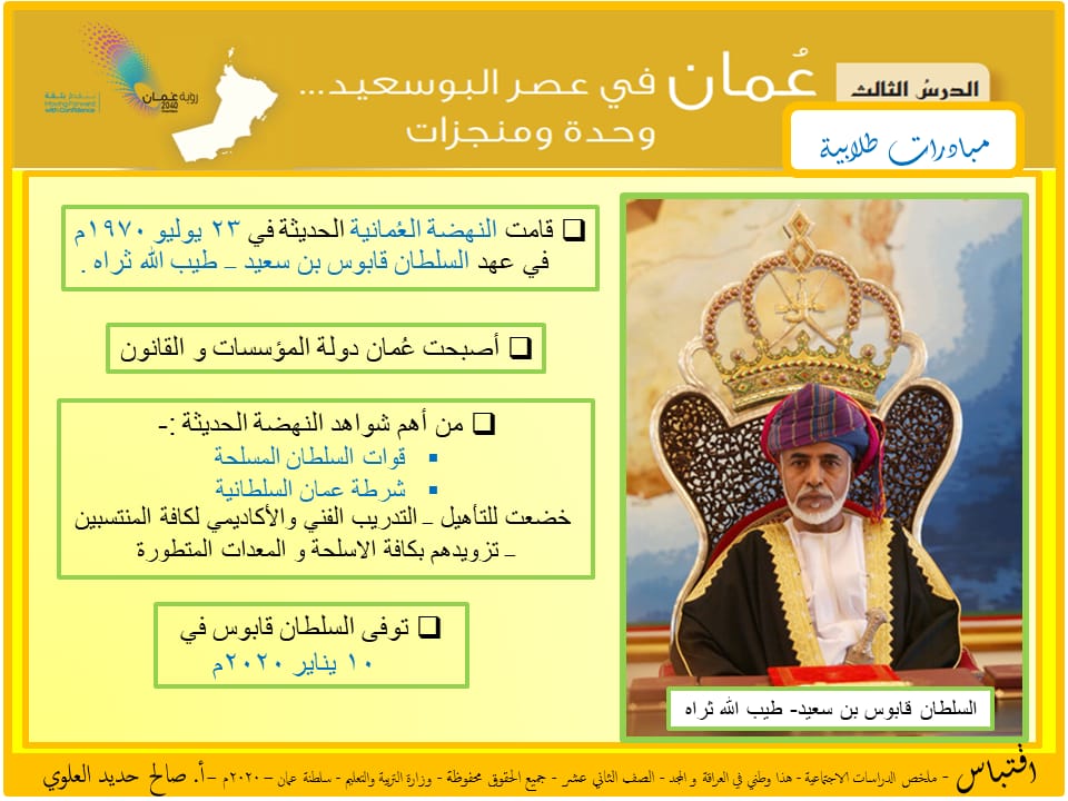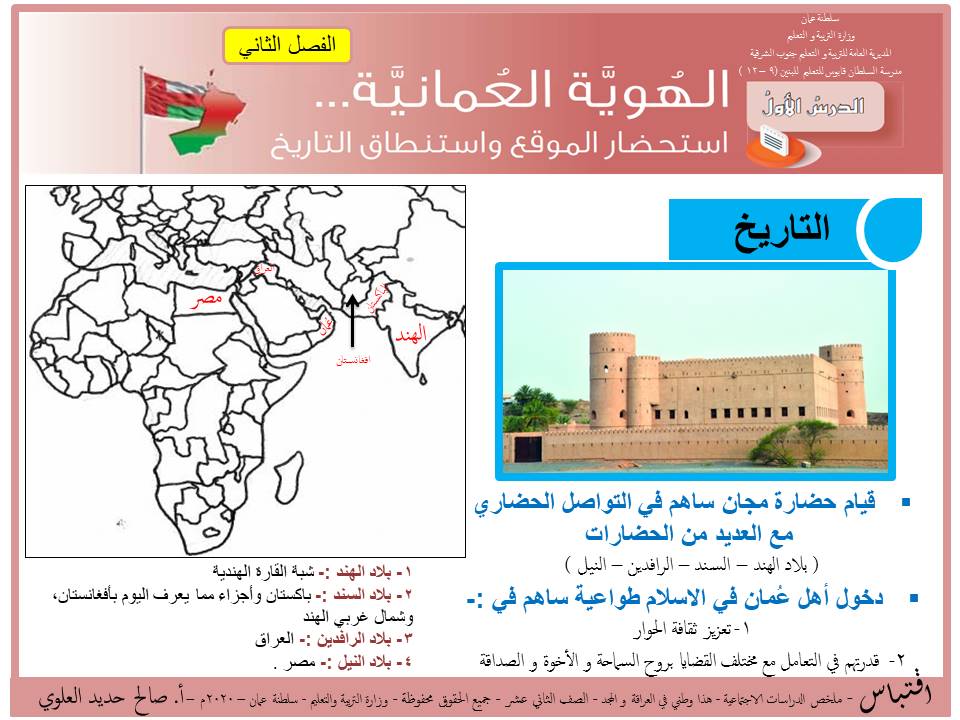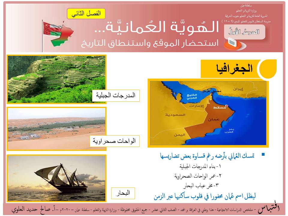 مادة الدراسات الاجتماعية ( هذا وطني ) للصف الثاني عشر من إعداد الأستاذ صالح العلوي من مدرسة السلطان قابوس بمحافظة جنوب الشرقية