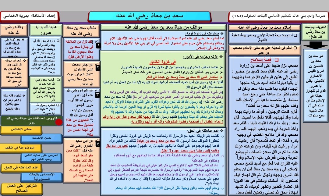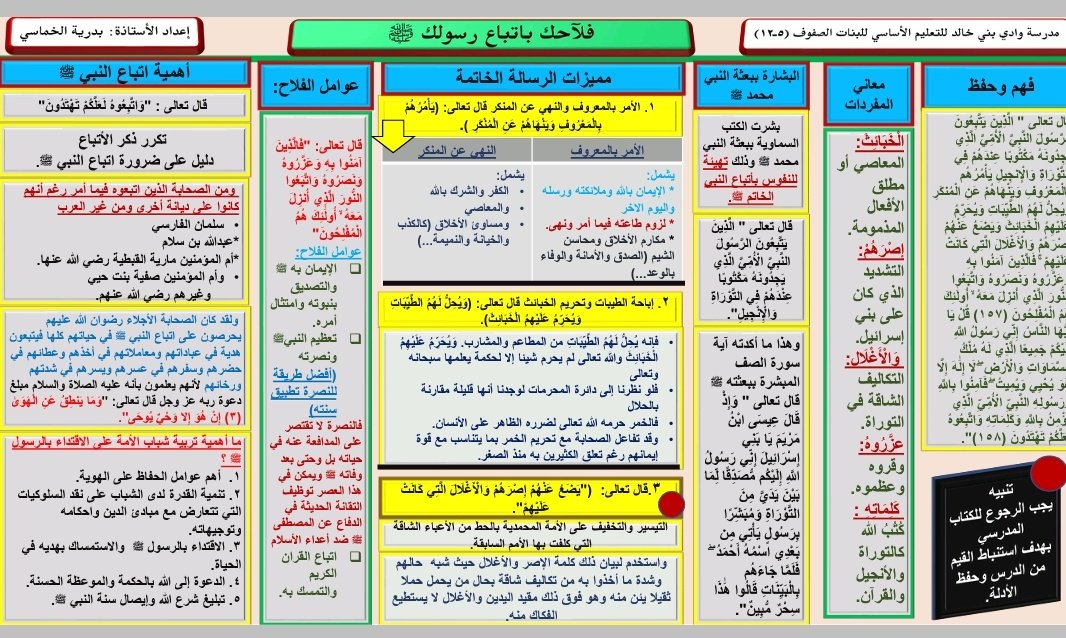 ملخصات تربية إسلامية من إعداد الأستاذة بدرية الخماسي من مدرسة وادي بني خالد بمحافظة شمال الشرقية ولها جزيل الشكر والتقدير لجهودها