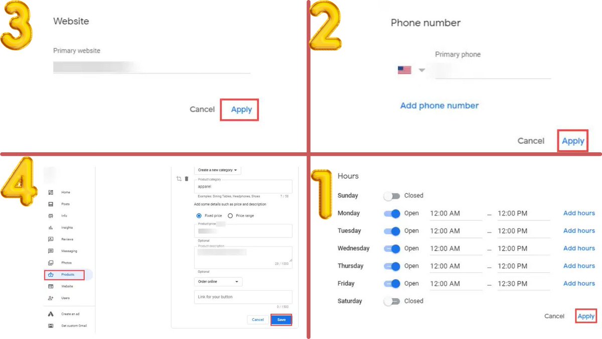 قم بزيارة لوحة تحكم GMB وحدد القائمة التي تريد العمل عليها. اختر "معلومات". بعد ذلك ، حدد القسم الذي ترغب في استكماله أو تحديثه.