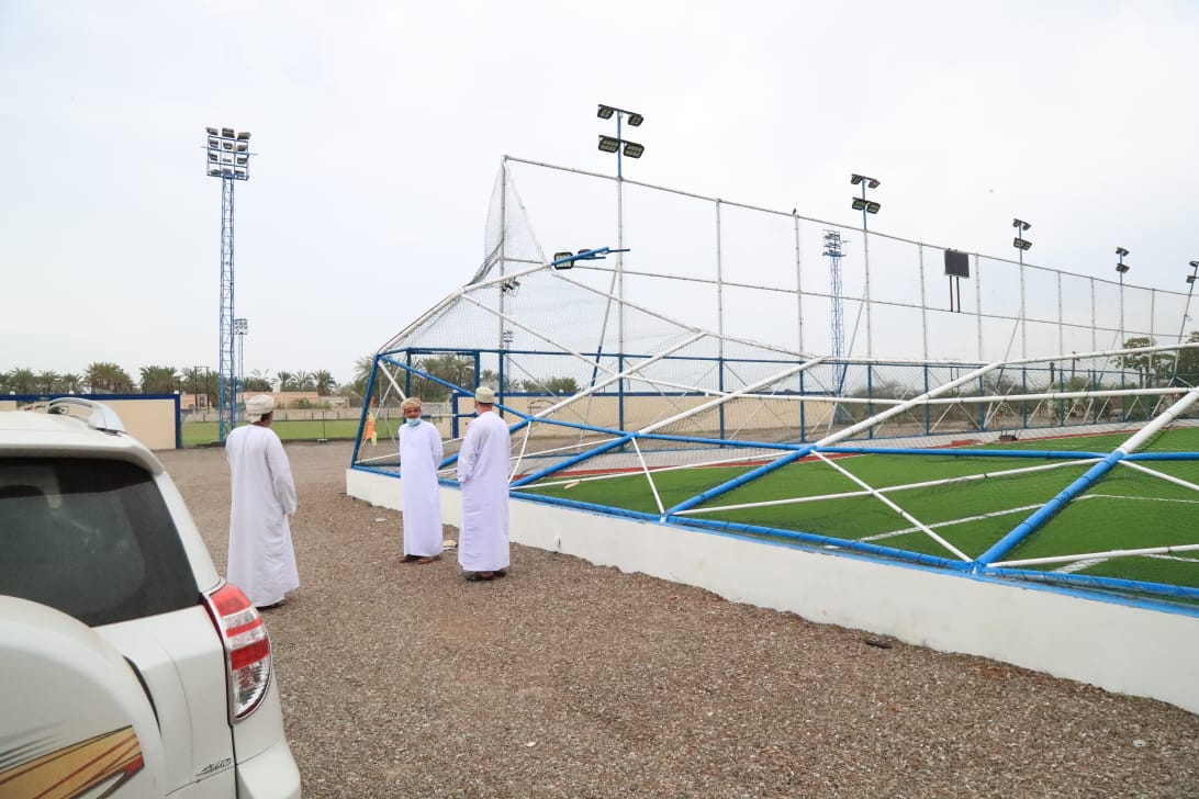 تضرر ملعب الترتان التابع للفريق بسقوط شباكه وأعمدة إنارته.