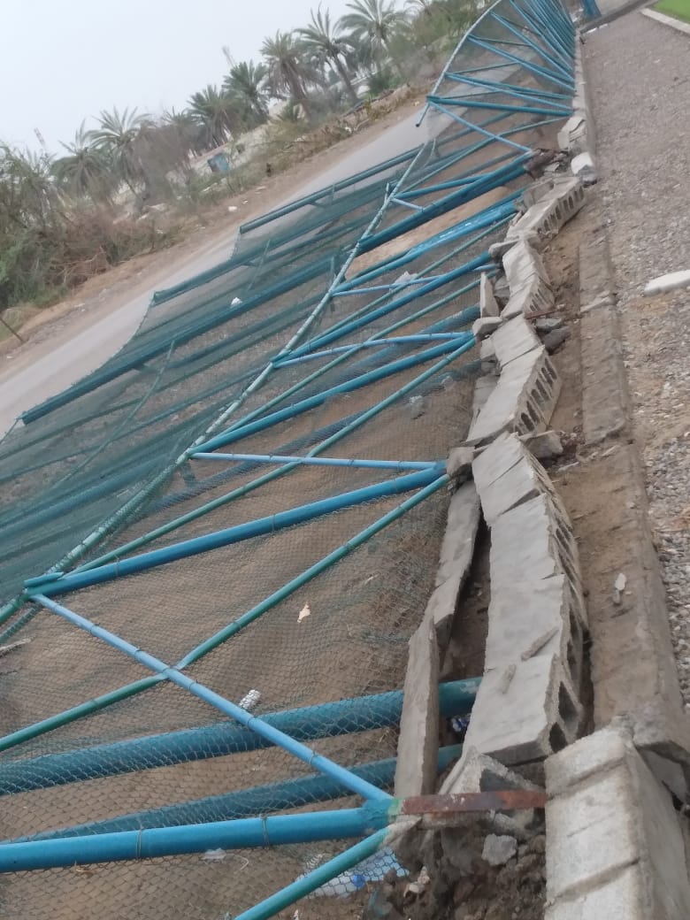 الأضرار والتلفيات التي تعرض لها ملعب فريق الردة جراء الأنواء المناخية مساء الثلاثاء الماضي: