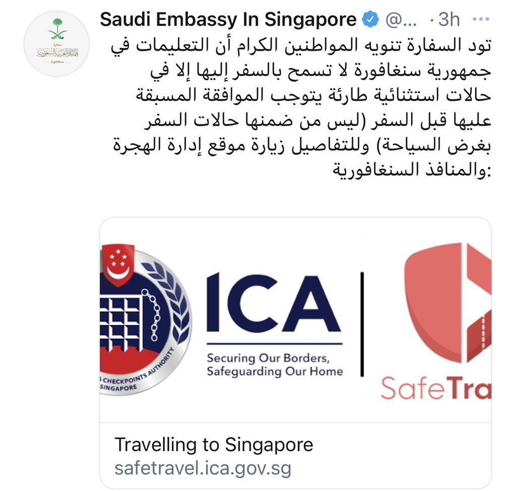 تحت هالتغريدة راح أجمع كل التصاريح الرسمية من سفاراتنا السعودية في الخارج عن كل مايخص السفر للكثير من الوجهات حول العالم يعني بإختصار هنا مصدرك الوحيد والرسمي بعيداً عن إجتهادات الآخرين اللي ماعاد ندري وش اللي منها صح أو خطأ فضلو هالتغريدة علشان ترجعون لها متى م احتجتو لها