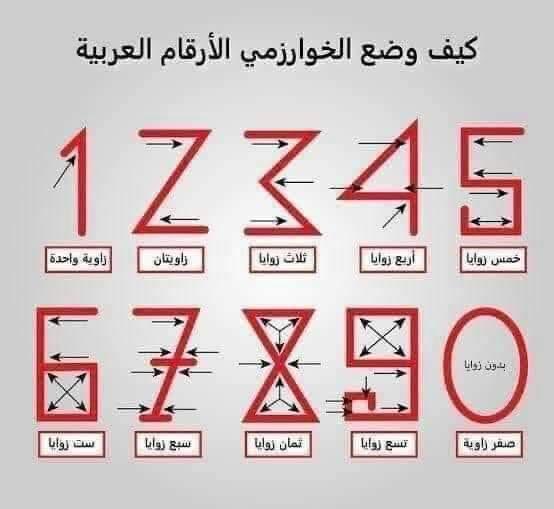 للغة الإنجليزية بـ (algorithm)، وهي مشتقة من اسم الخوارزمي وتعني علم اللوغاريتمات الأرقام الهندية (الأرقام العربية): من أهم ما قام به الخوارزمي هو إيصال طريقة الحساب الهندية إلى العالم الغربي، وإدخال مصطلح الرقم صفر، ممّا غيّر مفهوم الأعداد جذرياً