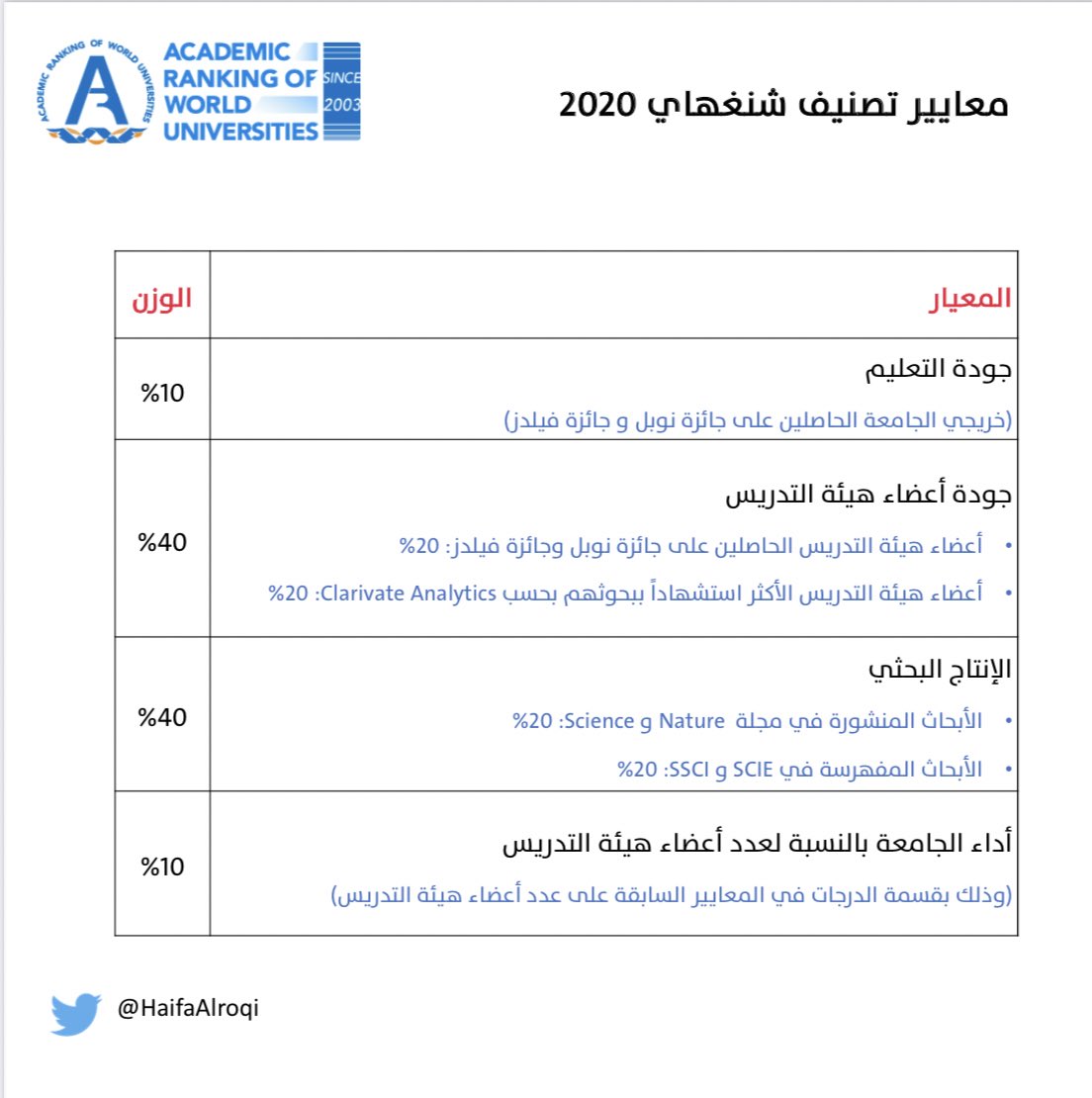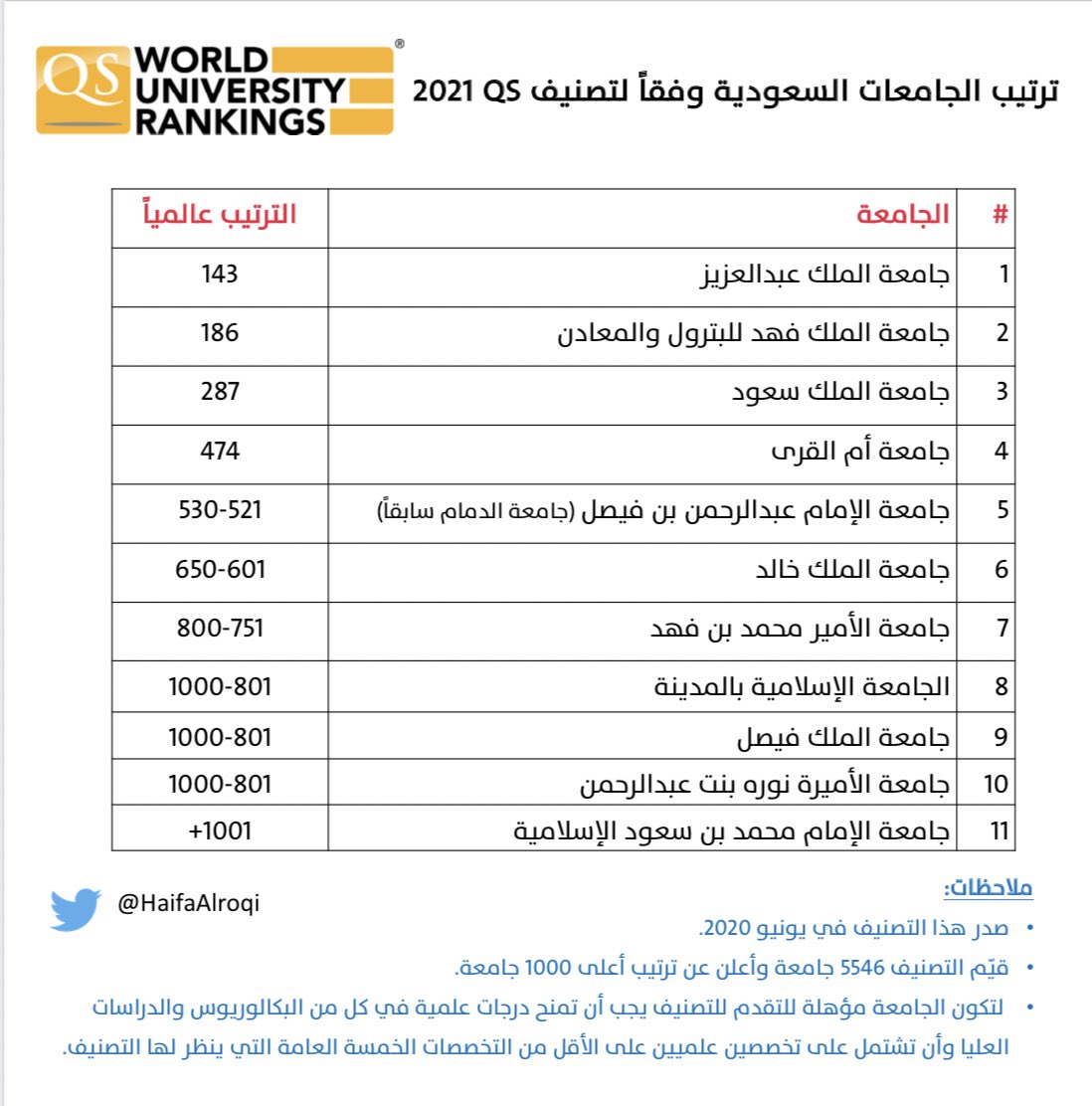 ترتيب الجامعات السعودية عالمياً بحسب #تصنيف_شنغهاي ٢٠٢٠