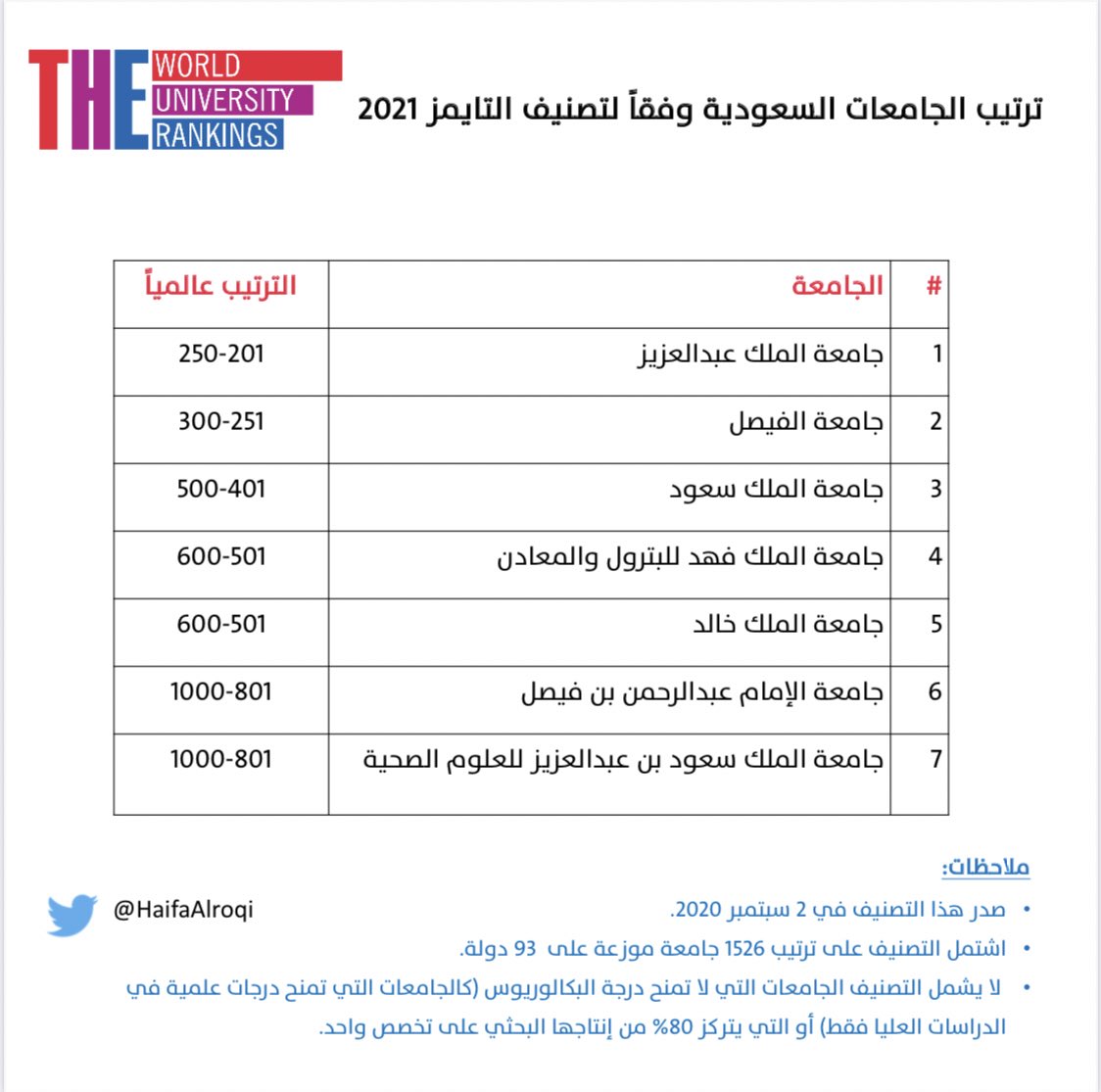 وتصنيف التايمز 2021 صدر في سبتمبر ٢٠٢٠