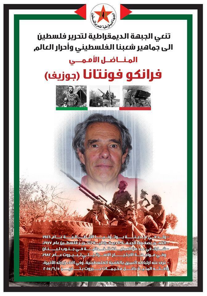 7⃣الفدائي الإيطالي فرانكو فونتانا (جوزيف إبراهيم) أوصى أن يُدفن في #فلسطين فإن تعذر ففي أحد المخيمات الفلسطينية.