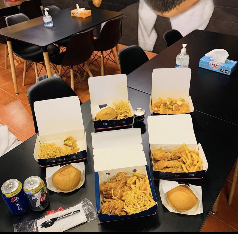 الطلبات : برجر لغاويص لحم لذيذ" مشهورين فيه " 👌🏻 ، تشكن لغاويص جيد👍🏻 الفرايز لغاويص💜🥵.