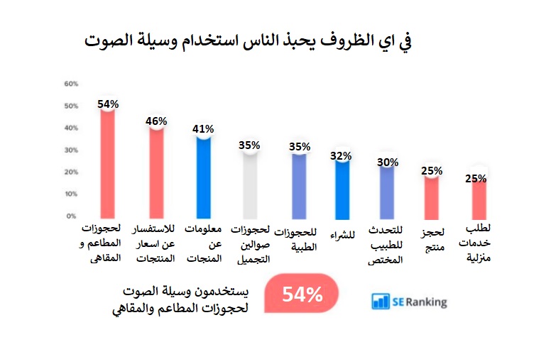تظهرالدراسات ان حجوزات المطاعم والمقاهي تصل الى 54% باستخدام المساعد الصوتي.