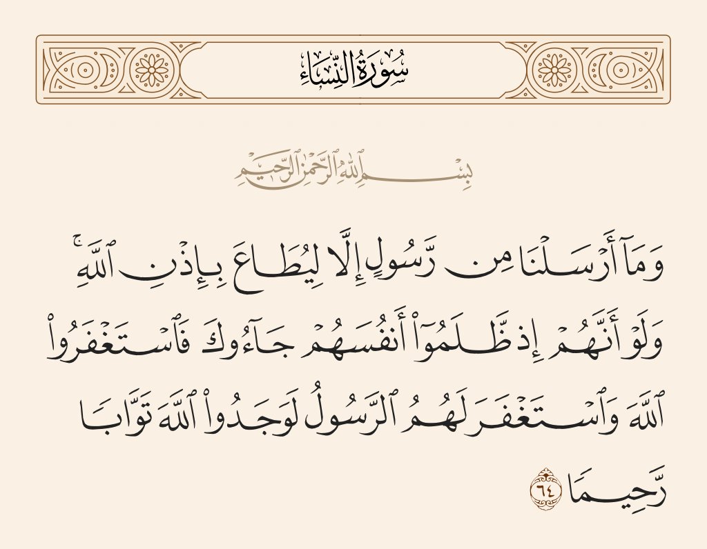 ﴿ فَلَا وَرَبِّكَ لَا يُؤْمِنُونَ حَتَّى يُحَكِّمُوكَ فِيمَا شَجَرَ بَيْنَهُمْ ثُمَّ لَا يَجِدُوا فِي أَنْفُسِهِمْ حَرَجًا مِمَّا قَضَيْتَ وَيُسَلِّمُوا تَسْلِيمًا ﴾