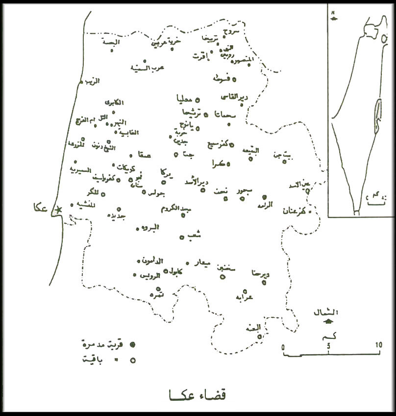 مرفق في الثريد خرائط تبين القرى الفلسطينية المدمرة حسب القضاء