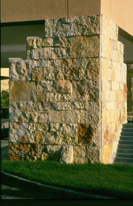أُستخدم الحجر المحلي لتكسية الواجهات الخارجية وعدد من الأسطح الداخلية. مفهوم الضوء والظل لازال واضح هنا.