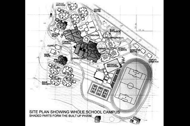 مدرسة طلاب ثانوية للموهوبين. لاحظوا معالجة الأركان ووحدة المادة وعدم معالجتها.