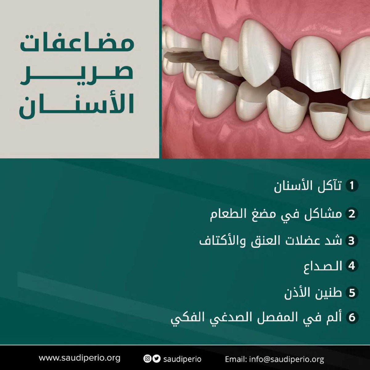 - أكثر من 80% من اللي يعانون من صرير الأسنان أثناء النوم لا يعلمون بالمشكلة.
