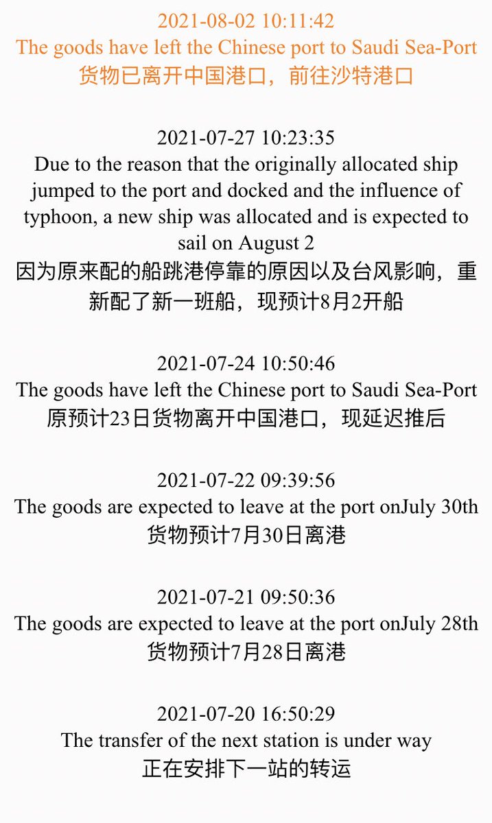 وشركة الشحن الجديدة قالت انه اخذنا الشحنة من وقت المشكلة لكن تبين انه الى الان لم ياخذون الشحنة