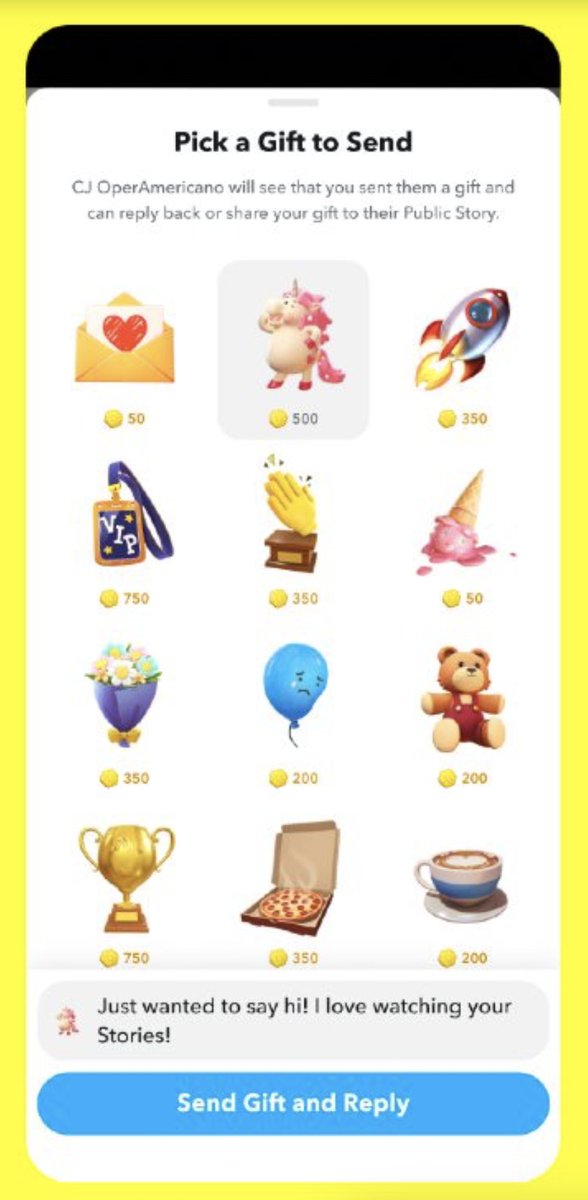 ايضا تم الاعلان عن خاصية اهداء الستكرات من المتابعين لنجوم سنابتشات.