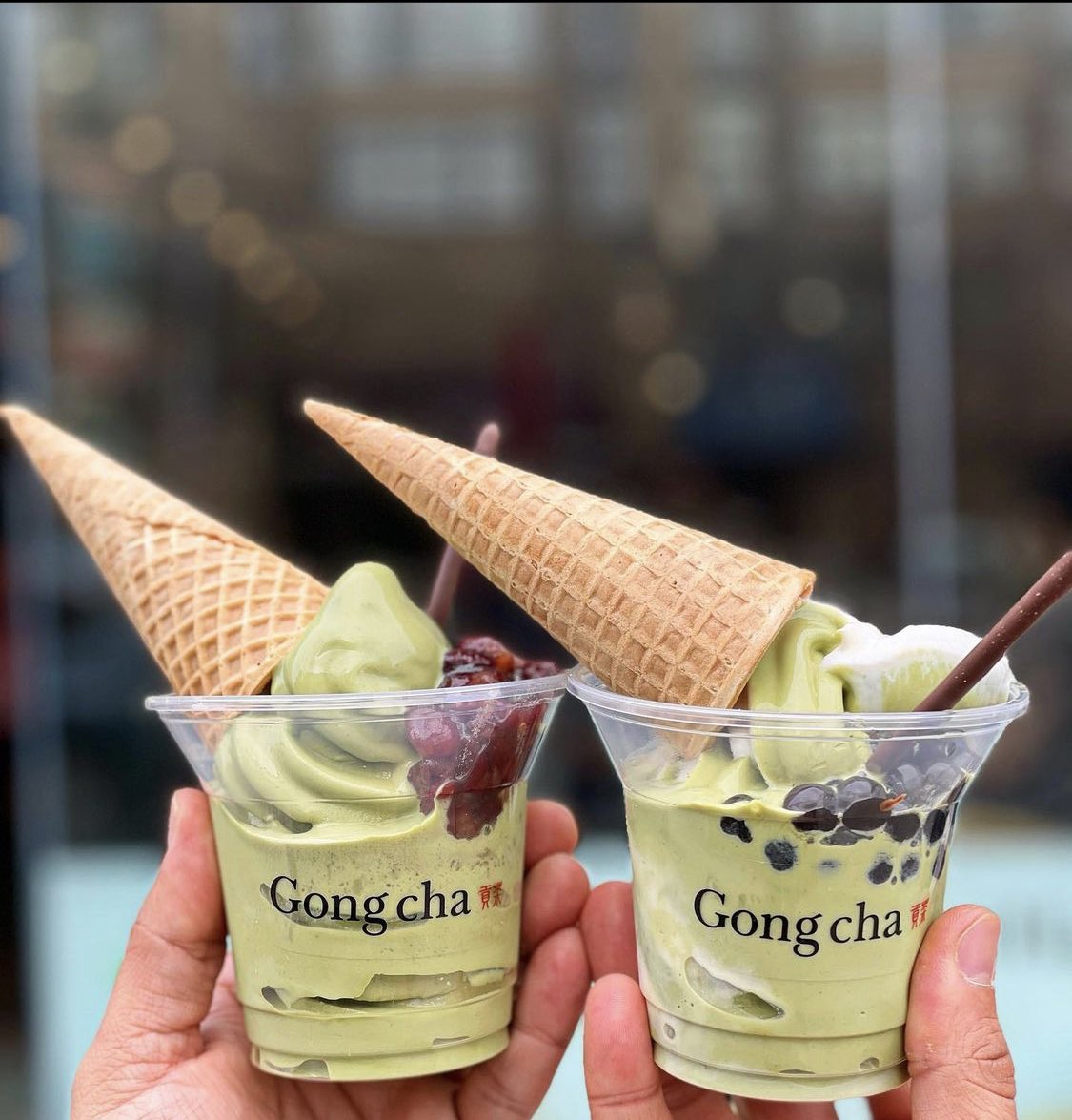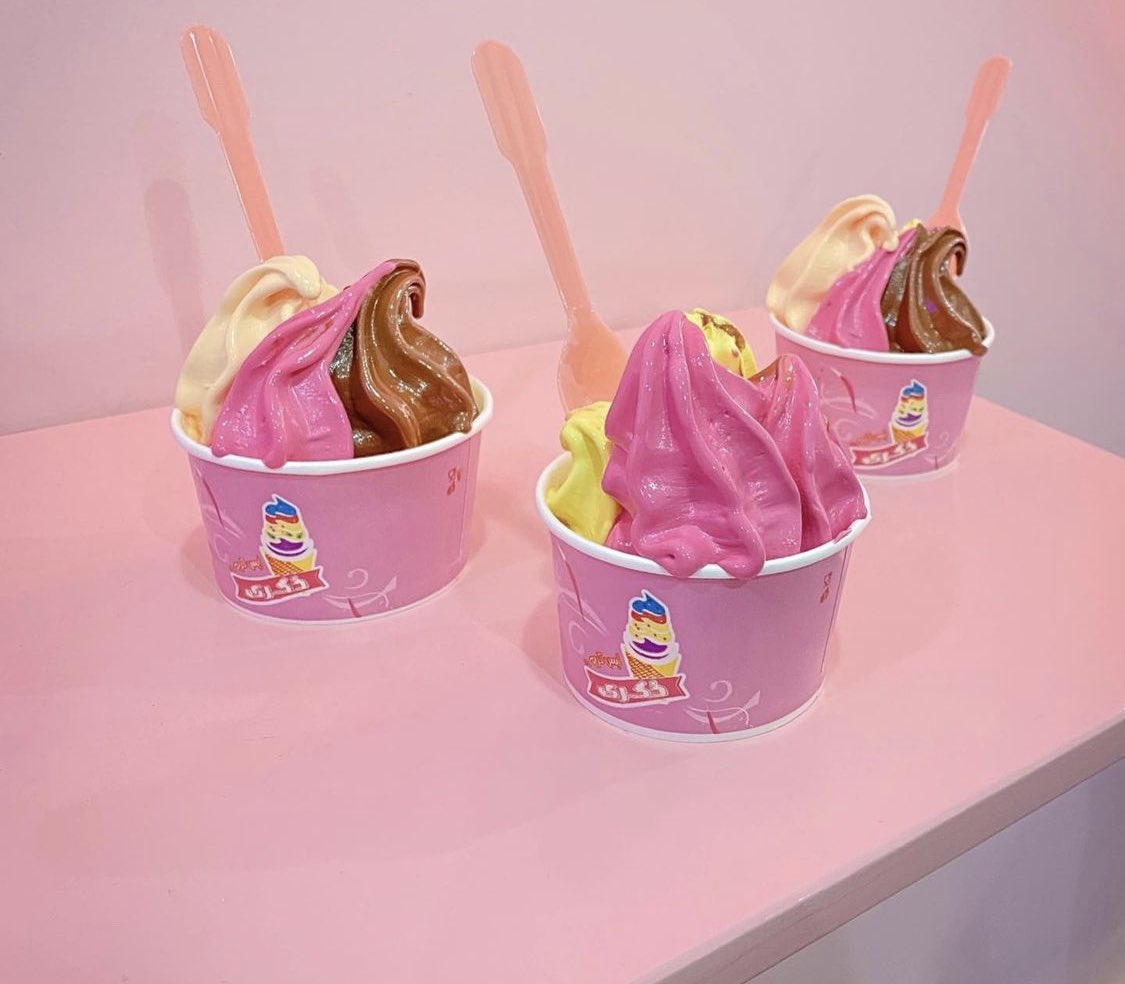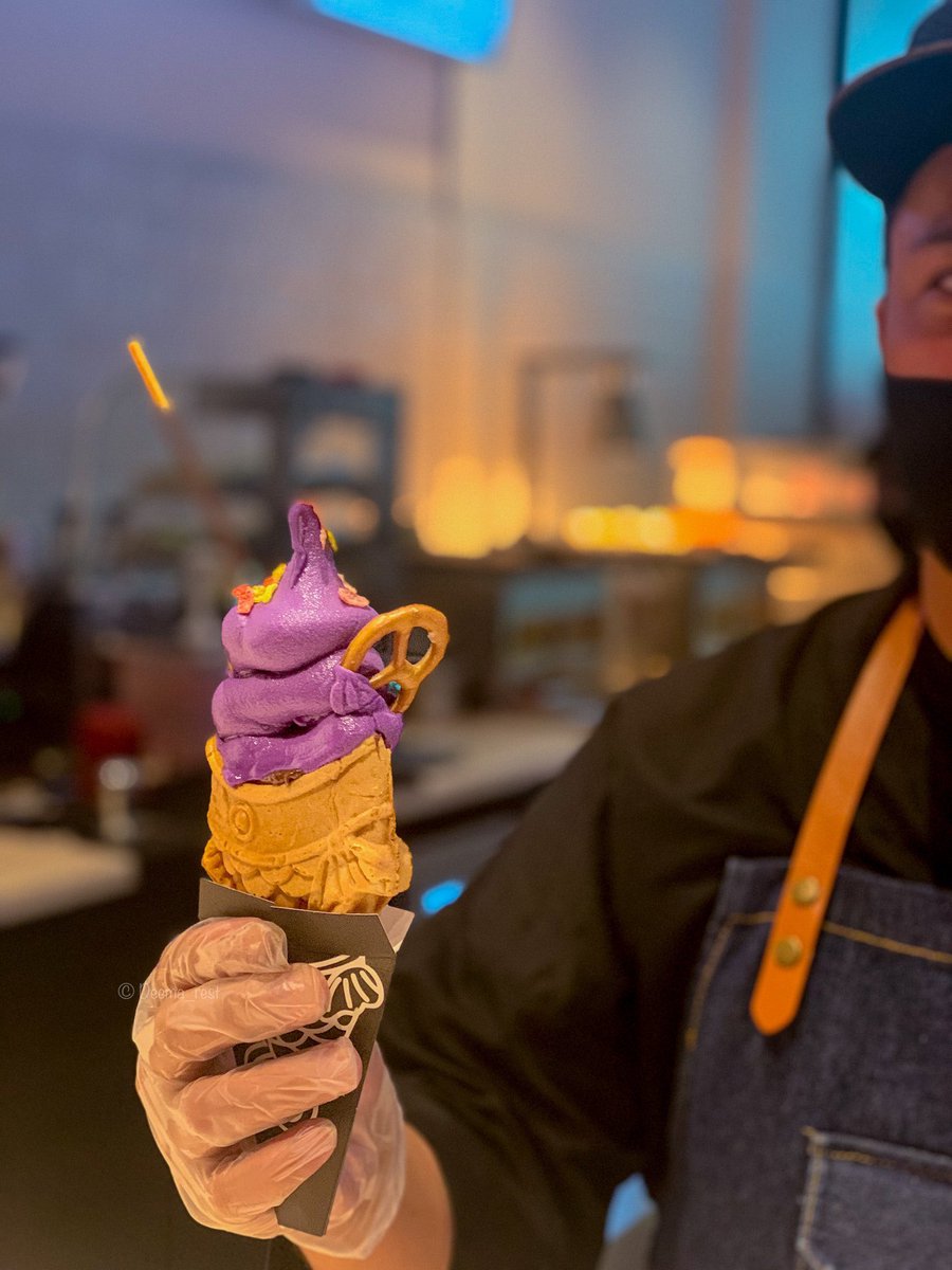 يقدم الايسكريم بالطريقه اليابانيه مشهورين بنكهة الاوبي (بطاطا حلوه )