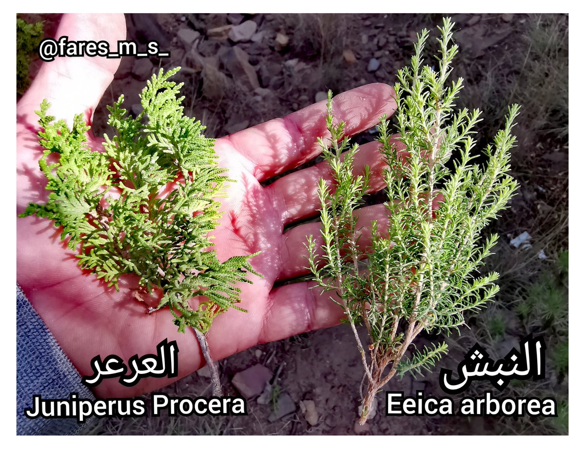 ⑨ مقارنة بالصور بين شجرتي النبش النادر والعرعر المنتشر في متنزه السودة الوطني.