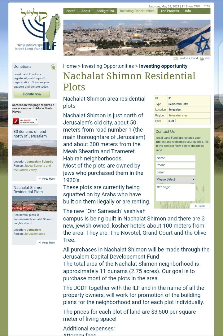 وقامت هذه المنظمة نهلات شمعون برفع دعاوي قضائية على أهالي حي الشيخ جراح وايدتها جميع المحاكم الإسرائيلية بحجة أن العرب " الفلسطينيين" بنوا على هذه الأرض "الحي" أو يؤجرونه بشكل غير قانوني وليست ملكهم التي سكنوا بالحي منذ ١٩٥٦، والجدير بالذكر أن يوجد مؤسسة "صندوق ارض إسرائيل"